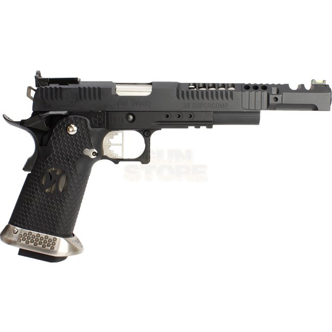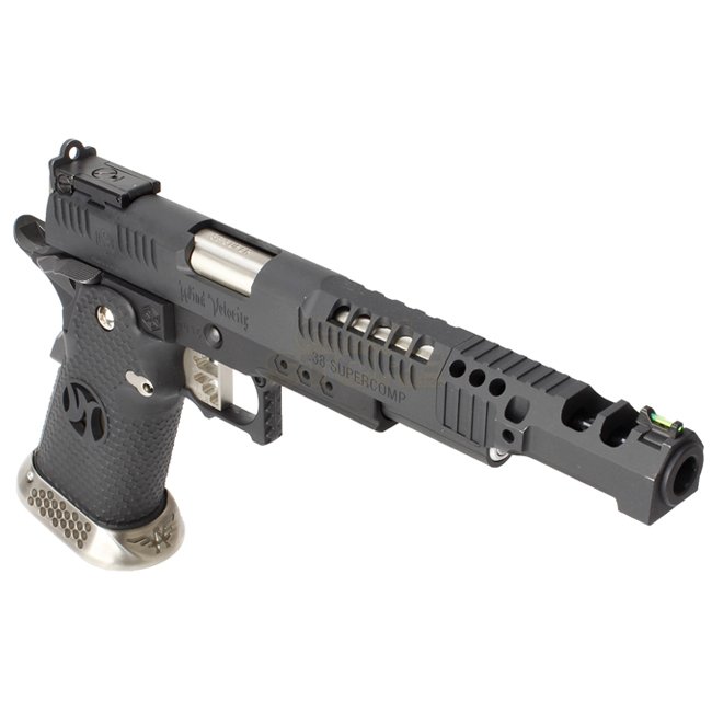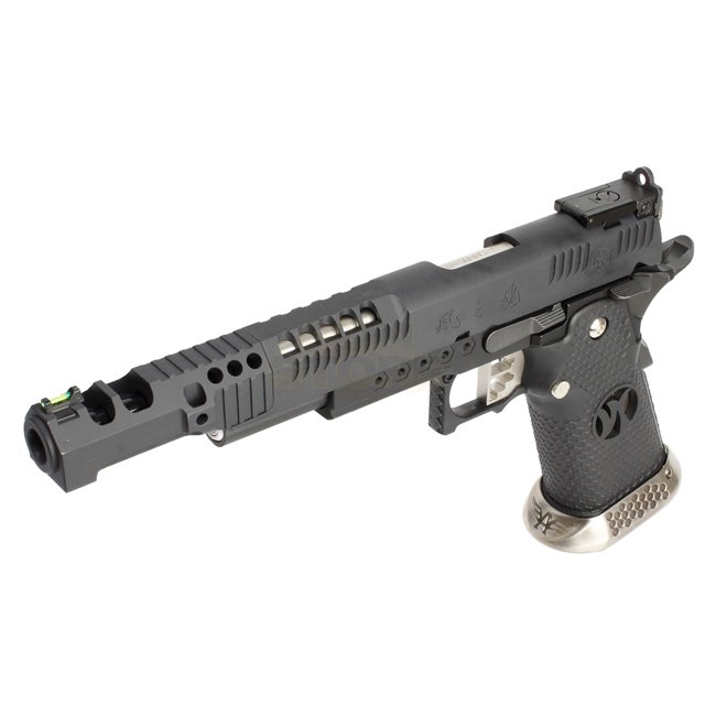 Armorer Works AG-HX2402 4.5mm Airgun - Black: CO2 blowback airgun with metal slide & frame, plastic grip, 20-round magazine capacity, 271mm length, 735g weight, 166mm inner barrel length, muzzle energy 1.9-2J, semi-auto shooting mode. Includes gun and mag