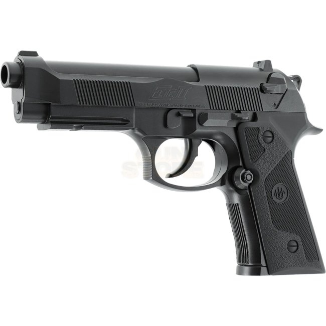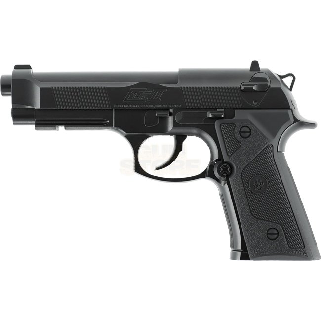 Beretta Elite II Co2 4.5mm BB - Black is a sleek and powerful air gun with Co2 12g Non Blowback system, durable metal and plastic stock, 19 rounds magazine capacity, compact size of 215mm and a weight of 545g. It features an inner barrel length of 124mm,