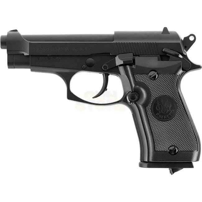 Beretta M84 FS Blow Back Co2 4.5mm BB - Black: Co2 12g Non Blowback, Metal/plastic stock, 17-round magazine, 177mm length, 644g weight, 3.0-3.2J muzzle energy, Semi Auto shooting mode.