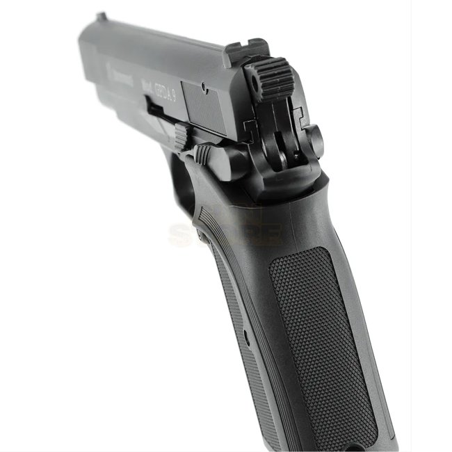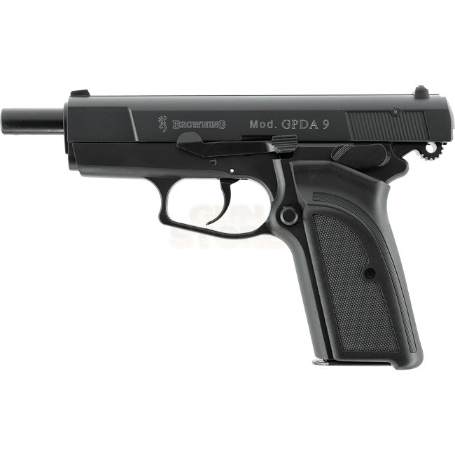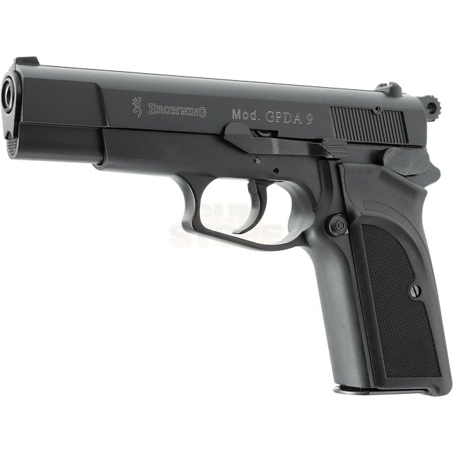 The Browning GPDA9 9mm P.A.K. delivers power in style. Metallic finish with a sleek black grip cover. Semi-automatic shooting mode, 9-round magazine capacity. Compact at 194mm in length, 885g in weight. Package includes gun, magazine, cleaning brush, and