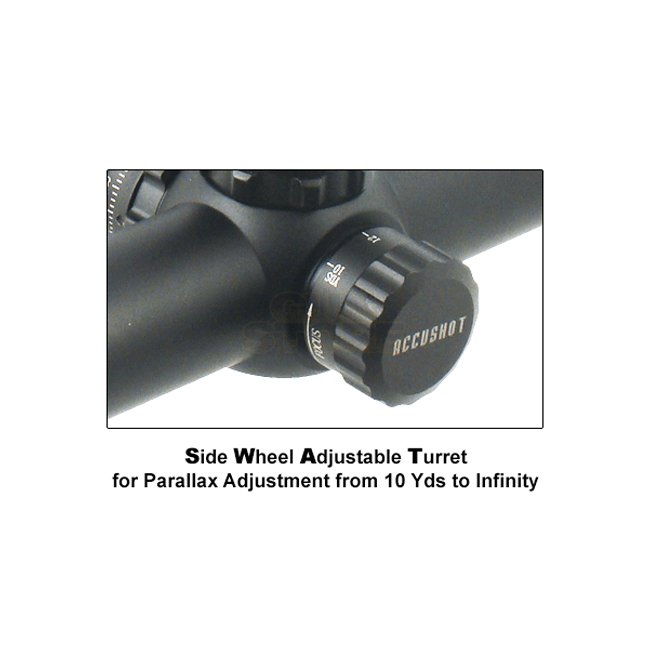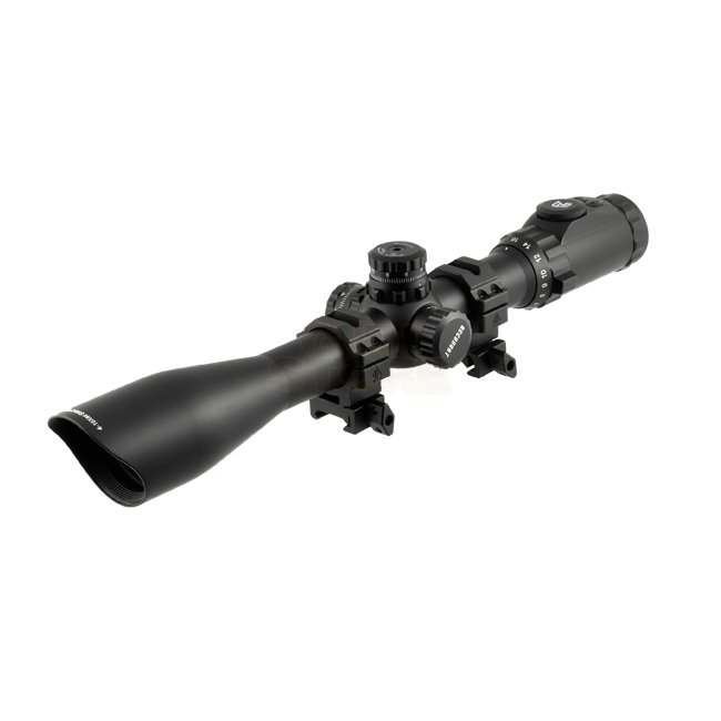 Leapers 4-16x44 30mm AOIEW Accushot Premium: Magnification 4-16x, Objective lens 44mm, Eye relief 81-76mm, Field of view 24.4-6.8m, Tube size 30mm, Reticle Mil-Dot Dart, Adjustment 1/4 MOA, Focal Plane Second Focal Plane, Illuminated reticle Multicolor, M