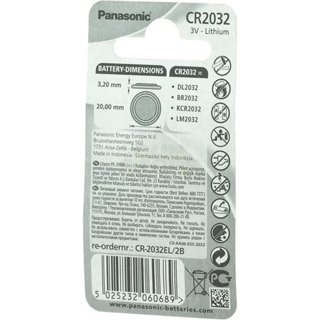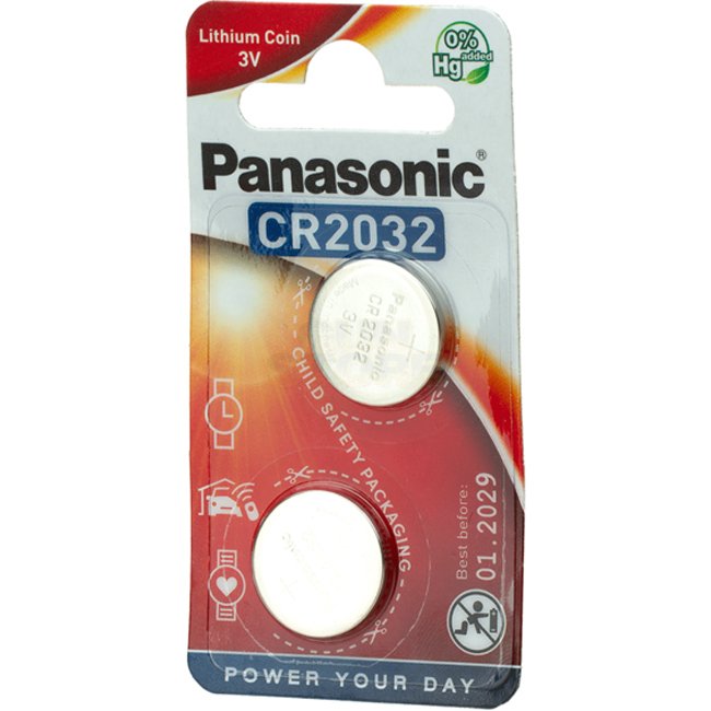 Get reliable power with the Panasonic CR2032 2pcs battery pack. Compact and long-lasting, these batteries are perfect for small electronic devices like watches, calculators, and key fobs.