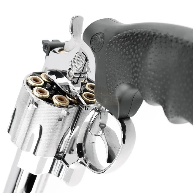 Highly realistic Smith & Wesson 629 Classic Co2 BB gun in silver finish. Solid metal construction, 5 inch barrel. Ideal for target shooting. Package includes 6 cartridges.