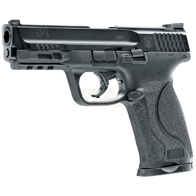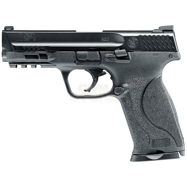 Smith & Wesson M&P9 2.0 T4E .43cal - Black: Co2 blowback system, metal/plastic build, 8-round magazine, 185mm length, 761g weight, 5.0-5.2J muzzle energy, semi-auto shooting mode. Package includes gun and magazine.
