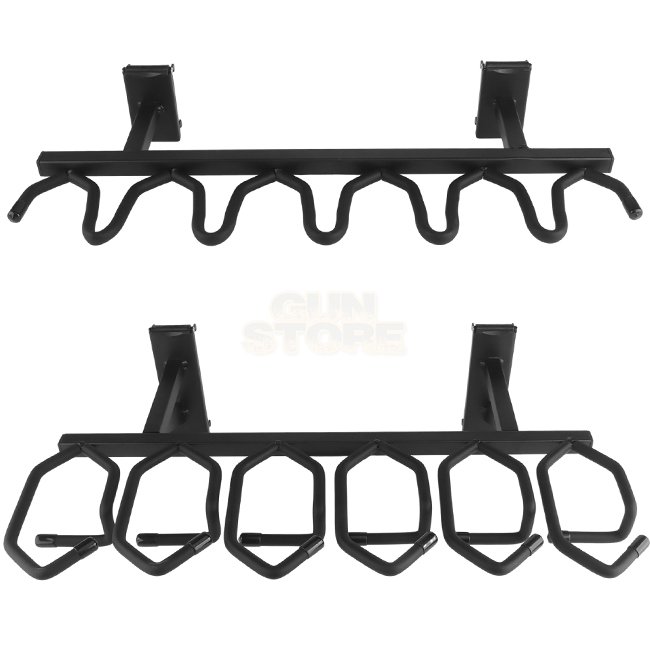 Specna Arms Wall Panel System Rifle Stand - Black - Stores up to 6 rifles in upright position, with rubber-coated contact surfaces to prevent scratches. Easy installation on Specna Arms and Savior Equipment wall panels. Includes Upper and Lower Mount Rail