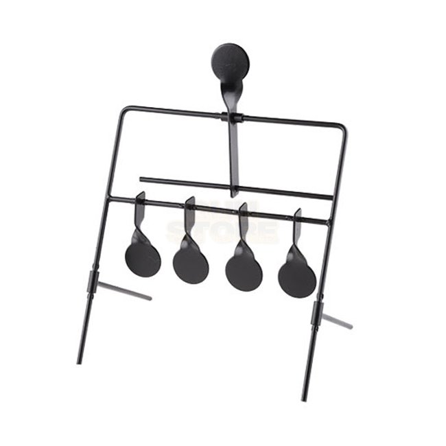 Five hanging targets made of steel. The frame can be set up on a hard or uneven soft surfaces. The targets are intended for pneumatic sport air guns as well as recreational air guns and can also be used with Airsoft replicas.