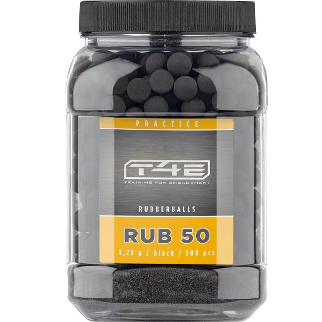 Train effectively with T4E .50 cal Practice RUB 50. Durable rubber balls for realistic training scenarios. Suitable for Cal. .50 Training Marker.