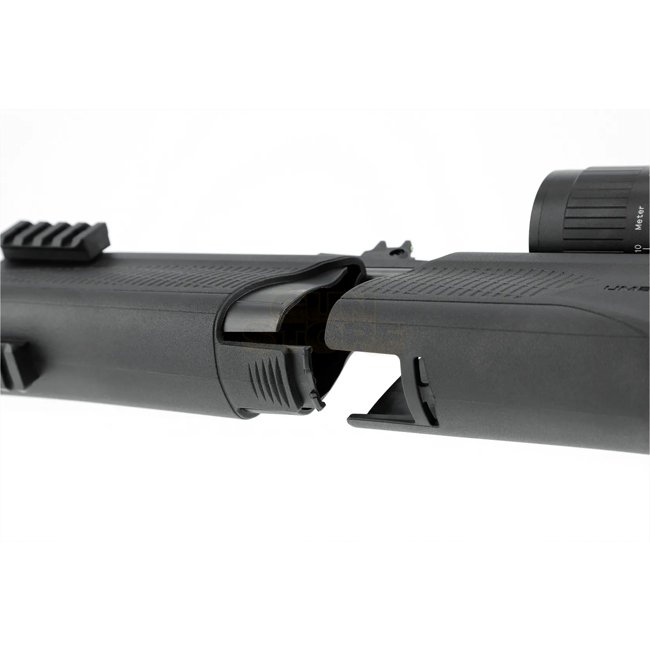 High-powered Umarex CO2 pellet gun with 16J muzzle energy, perfect for accurate single-shot shooting. Metal and plastic construction with an 8-round magazine capacity for 5.5mm pellets. Includes Co2 88g Non Blowback system. Length: 1057mm, weight: 3062g.
