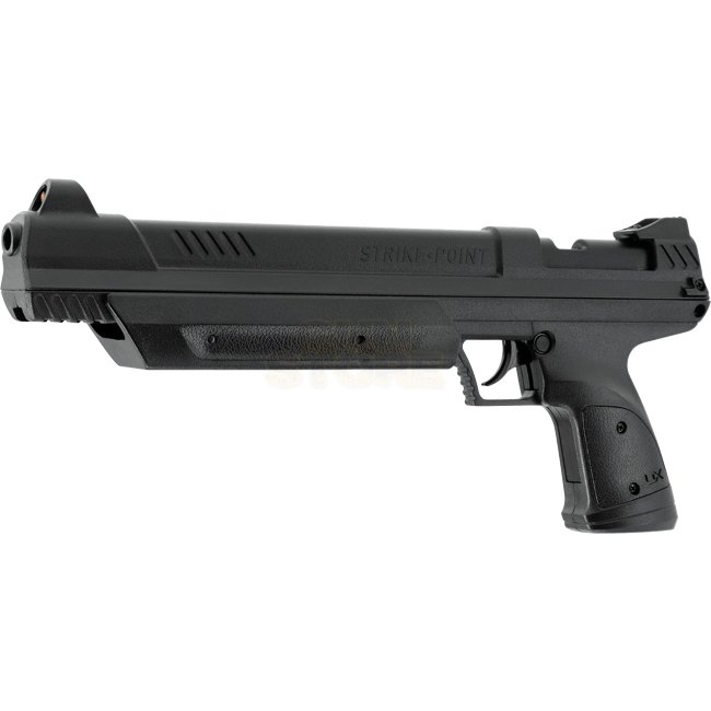 Umarex Strike Point 5.5mm Pellet - Black - Pneumatic air gun with single-shot mode, metal/plastic construction, 1100g weight, and 7.5-7.7J muzzle energy.