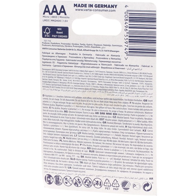 Varta AAA Longlife Power 4pcs - reliable and long-lasting batteries for all your essential devices.