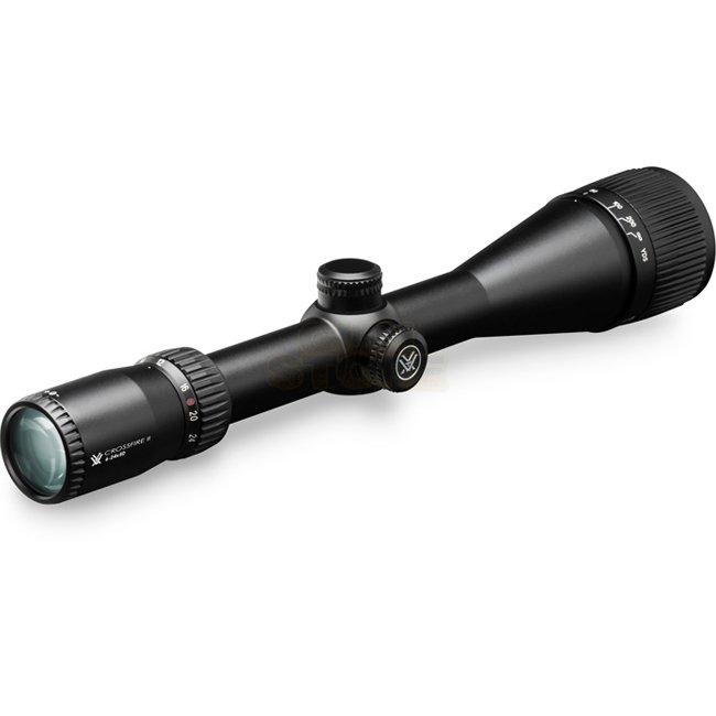 Clearer, tougher, and brighter, the Vortex Optics Crossfire II 6-24x50 AO Riflescope features longer eye relief, a fast-focus eyepiece, fully multi-coated lenses, and improved, resettable MOA turrets. Built to exceed performance standards, this riflescope