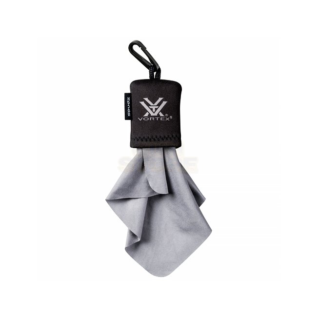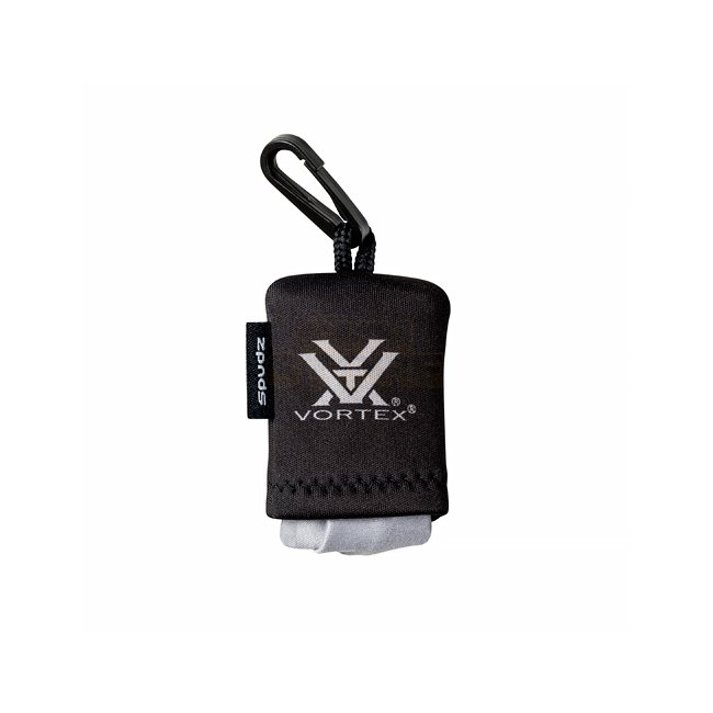 The SPUDZ Microfiber Cleaning Cloth by Vortex Optics is a convenient cloth that attaches to a neoprene pouch when not in use. It is perfect for cleaning any glass surface and can be easily clipped to key chains, zippers, bags, or other locations. This was