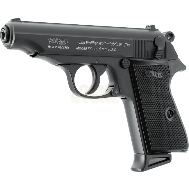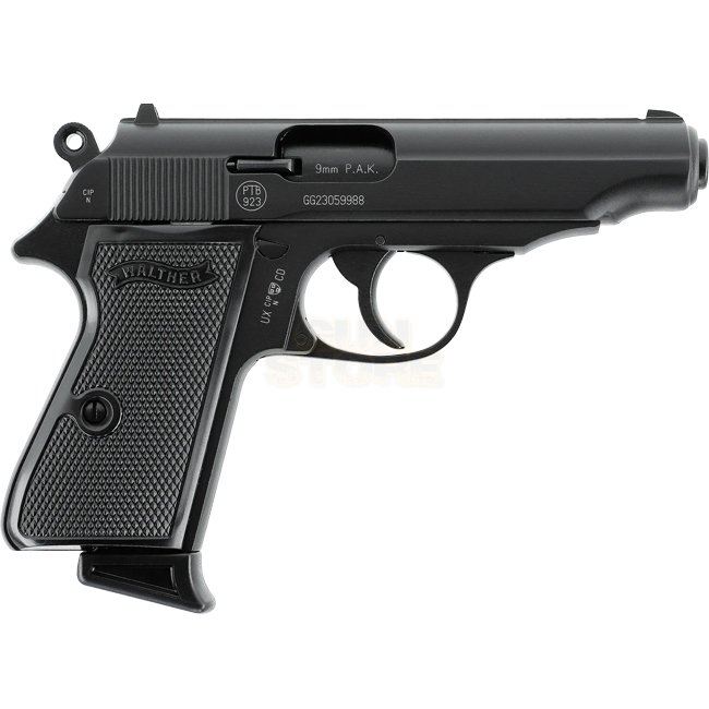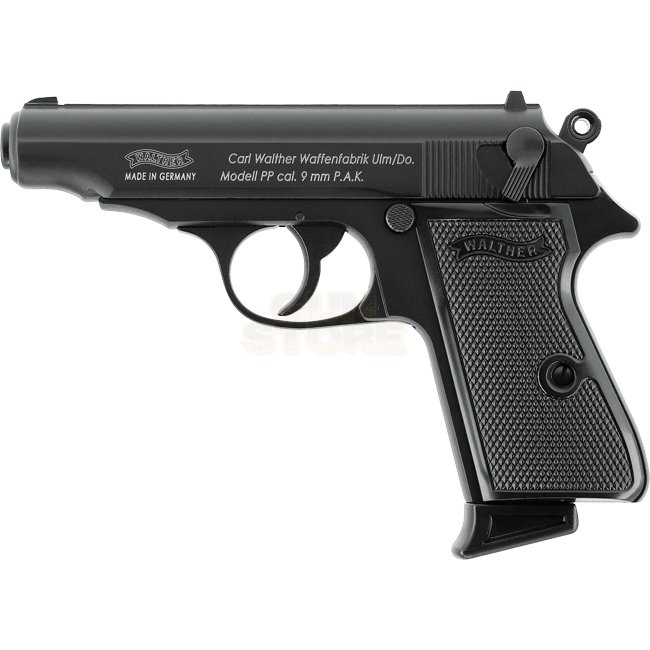 Compact, durable and sleek, the Walther PP 9mm P.A.K. in Black delivers powerful performance in a Semi Auto mode. Includes gun, magazine, cleaning brush, and case.