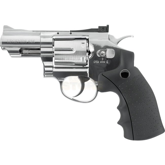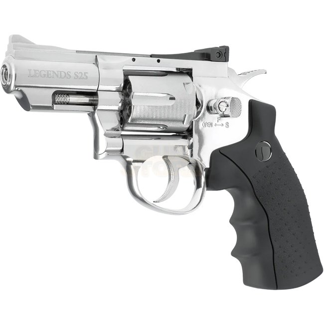 Legends S25 Full Metal Co2 4.5mm Pellets - Chrome, Co2 12g, Métal / plastique, chargeur de 6 coups, longueur de 210 mm, poids de 855 g, énergie à la bouche de 3,0-3,2 J, Simple / Double Action.