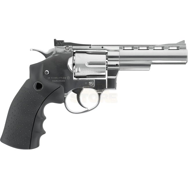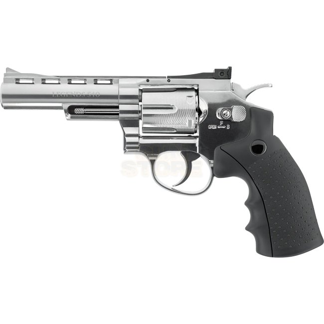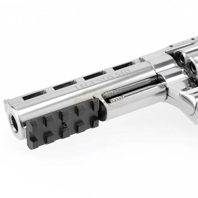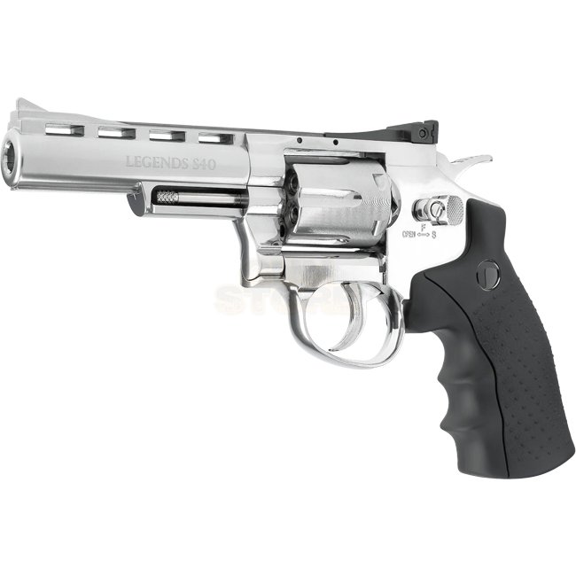 Légendes S40 Co2 4.5mm Pellet - Chrome, Métal et Plastique, Magasin 6rd, Longueur 246mm, Poids 880g, Énergie 4.0-4.2J, Action Simple/Doublée, Arme, 1x chargeur rapide, 6x cartouches.