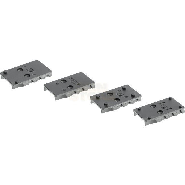 The set, consisting of four adapter plates, prepares Walther PDP T4E and airgun models for the use of red dot optics.