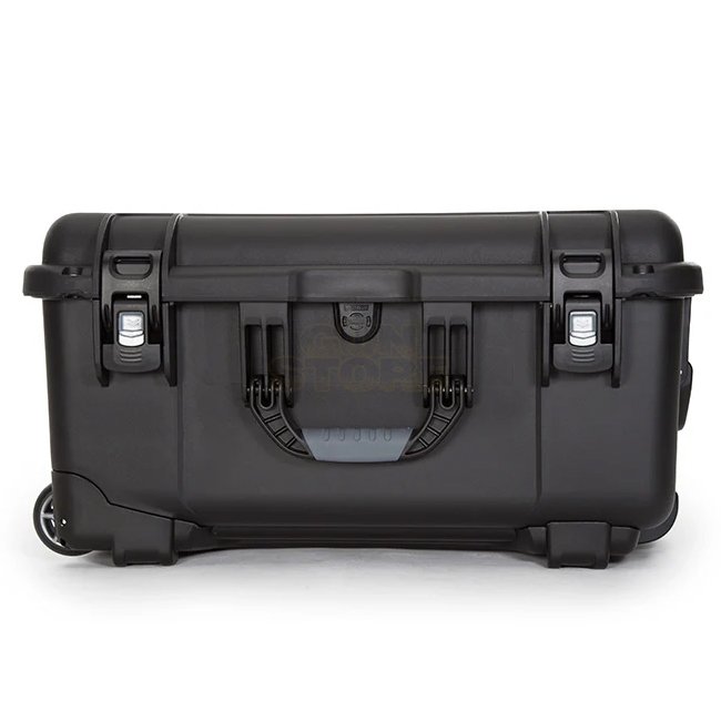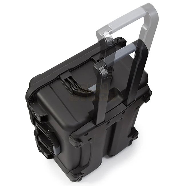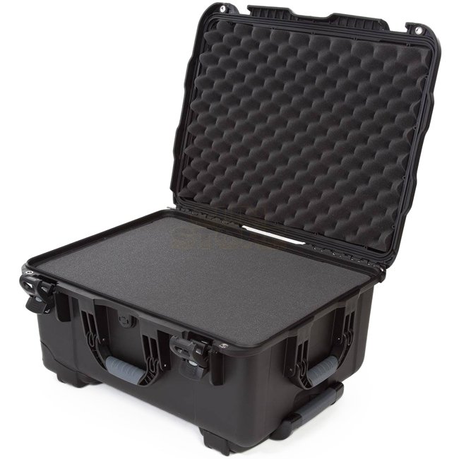 Großes, robustes Schutzgehäuse auf Rädern aus NK-7-Resin mit dem PowerClaw-Verriegelungssystem, automatischem Druckausgleichsventil, Soft-Grip-Griff sowie drei ergonomischen Tragegriffen und Polyurethan-Rollen – ideal für den transportempfindlicher Ausrüstung. Diese Variante wird mit einer vorgestanzten Würfelschaum-Einlage (geschlossenzellig) im Boden geliefert, zur sicheren Polsterung und Organisation von Geräten und Zubehör.